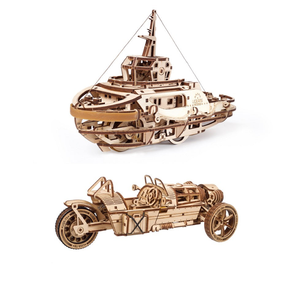 Introducing Winter Bundle #4: a unique mechanical pairing featuring the UGears Tugboat and the UGears Three-wheeler UGR-S. This seasonal bundle combines nautical charm with urban motion — perfect for collectors, builders, and holiday gifting.